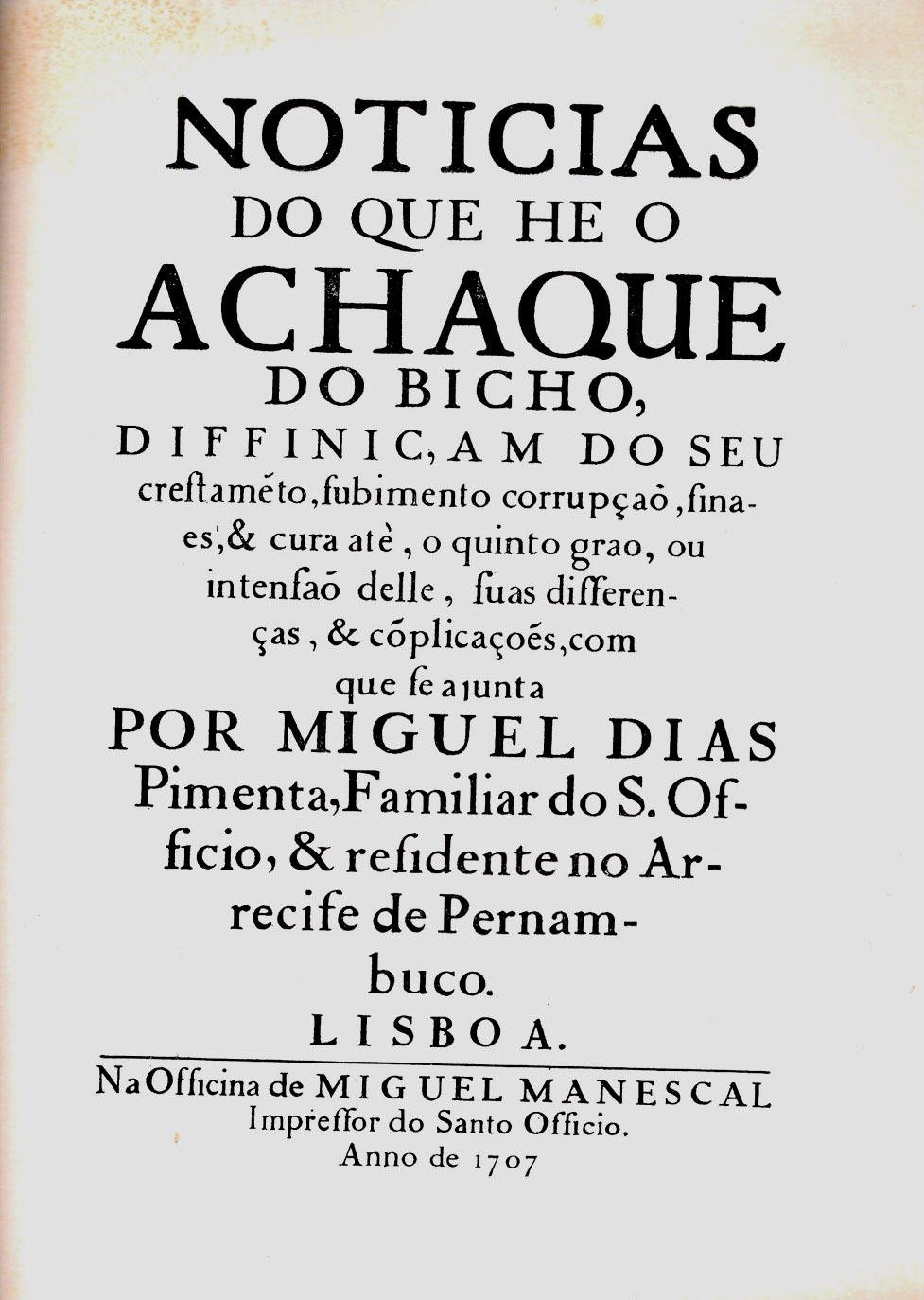 residia na África, do mal "chamado na língua do Paiz – maculo